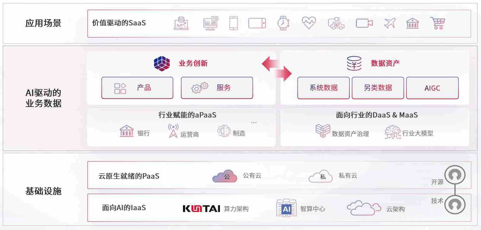 数字时代,,围绕企业数字化转型的关键要素,,恒盛娱乐数码开创性的提出数云融合战略和技术体系框架,,着力在云原生、、、数字原生、、、AI原生和信创产业上架构产品和服务能力,,,,为处在不同数字化转型阶段的快消零售、、汽车、、、、金融、、、医疗、、、政企、、、教育、、、、运营商等行业客户提供泛在的敏捷IT能力和融合的数据驱动能力,,构建跨界融合创新的数字业务场景和新业务模式,,助力企业级客户建立面向未来的核心能力和竞争优势,,全面推动社会的数字化、、智能化转型升级。。。。