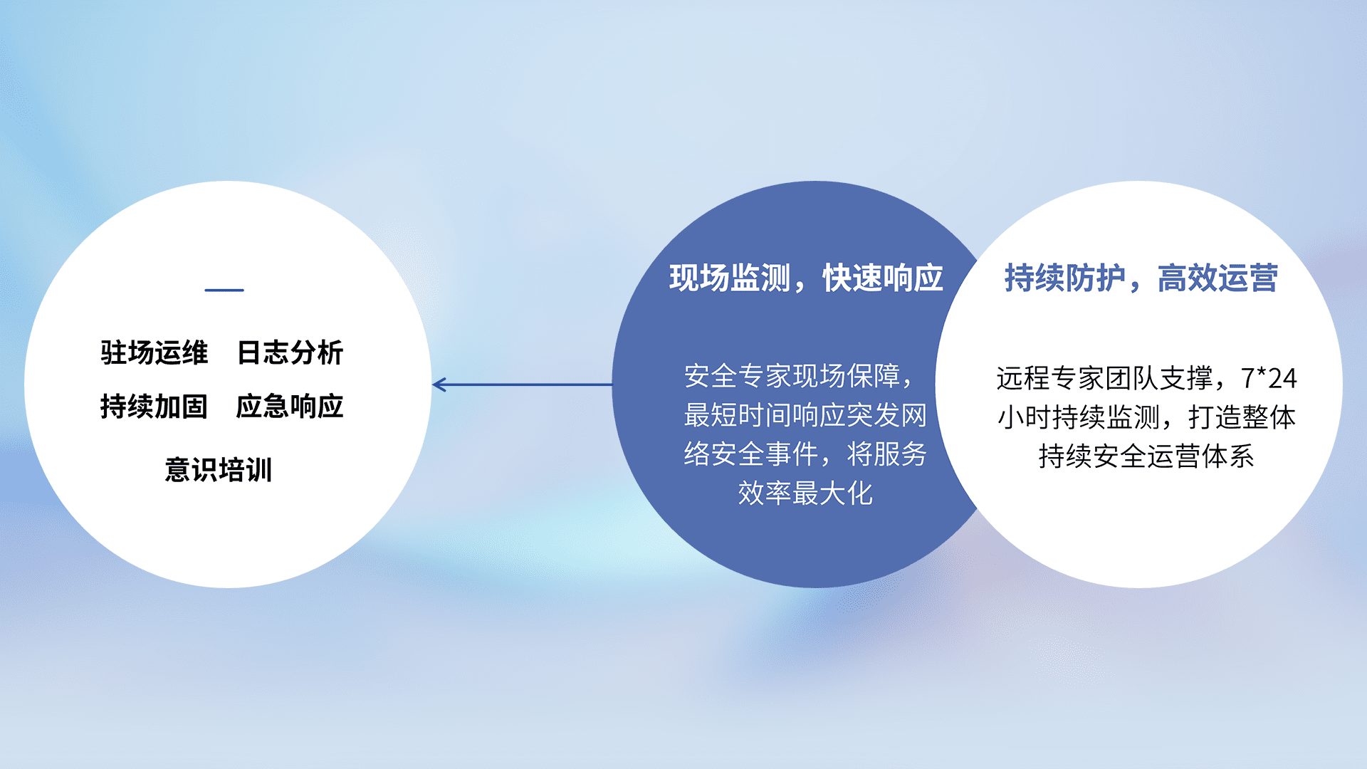 7X24小时持续监测安全事件,保持安全策略有效性,降低资产脆弱性风险,,,,精准拦截黑客攻击,,减少被黑客利用的机会,,,第一时间遏制,,,,降低损失。。。